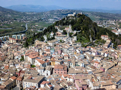 An overview of the capital of the Molise region in southern Italy, known for its historical hilltop center and surrounding mountainous terrain.