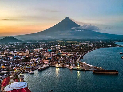 Geographic background on the hub of the Bicol Region in the Philippines, prominently featuring the historical and geological context of Mayon Volcano.